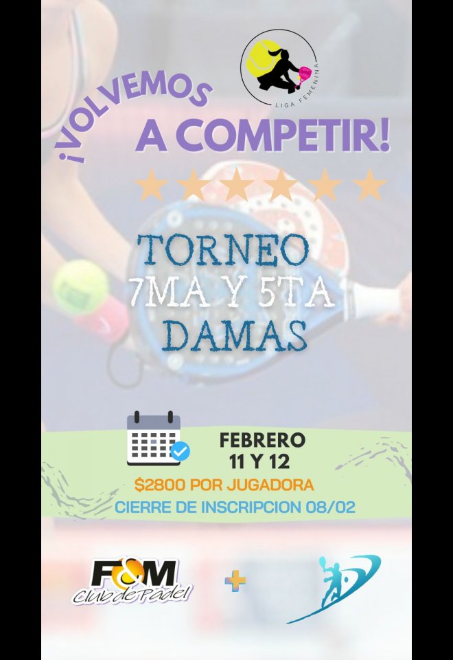 »» Evento: Liga femenina de padel »» Localidad: Tandil »» Fechas: 11/02/2023 al 12/02/2023